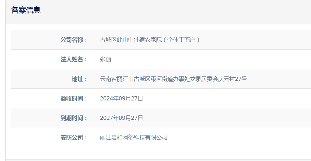 古城區(qū)此山中住宿農(nóng)家院(個(gè)體工商戶)電子監(jiān)控安防合格證下證通知